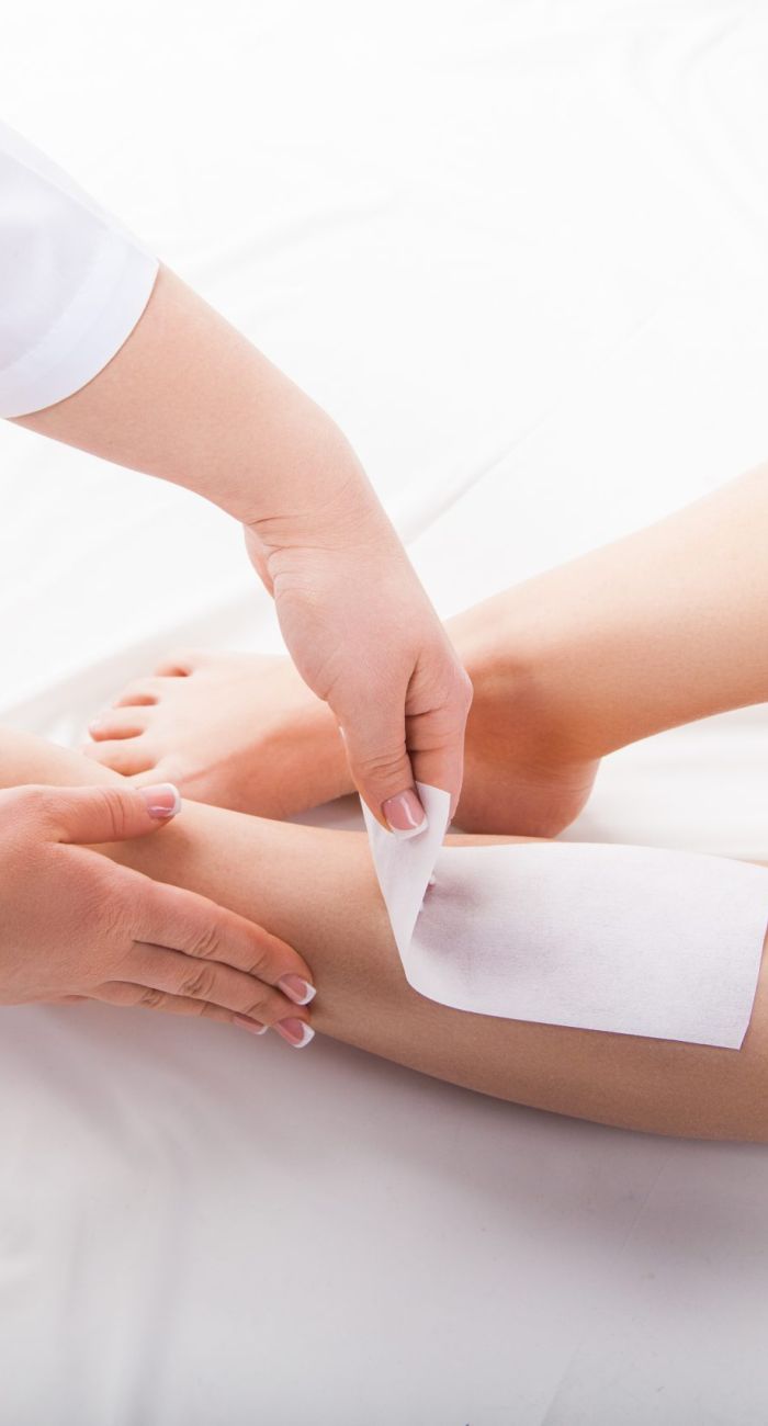 Effective waxing using Tea Tree Wax to minimise pain and prevent in-growing hairs.
